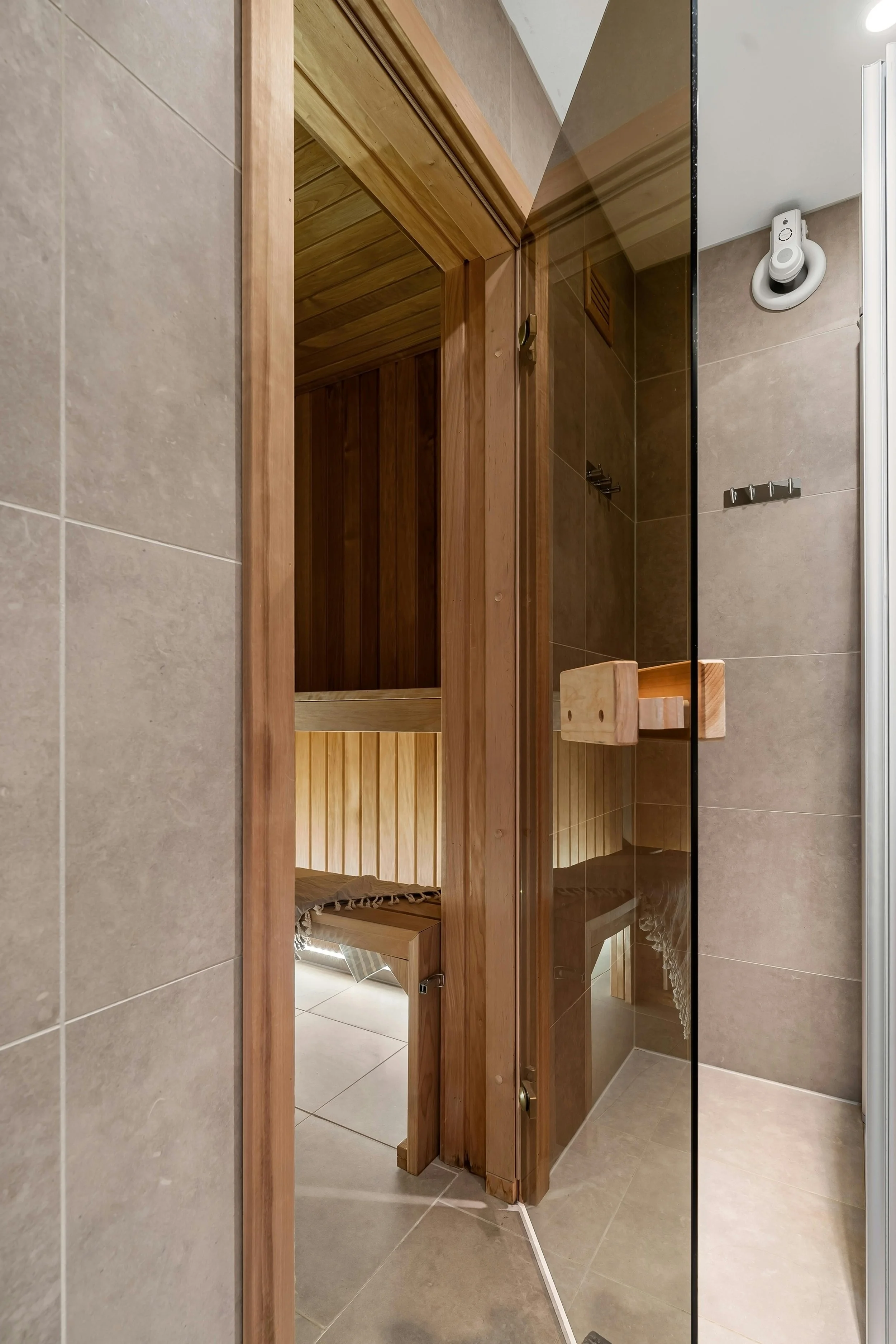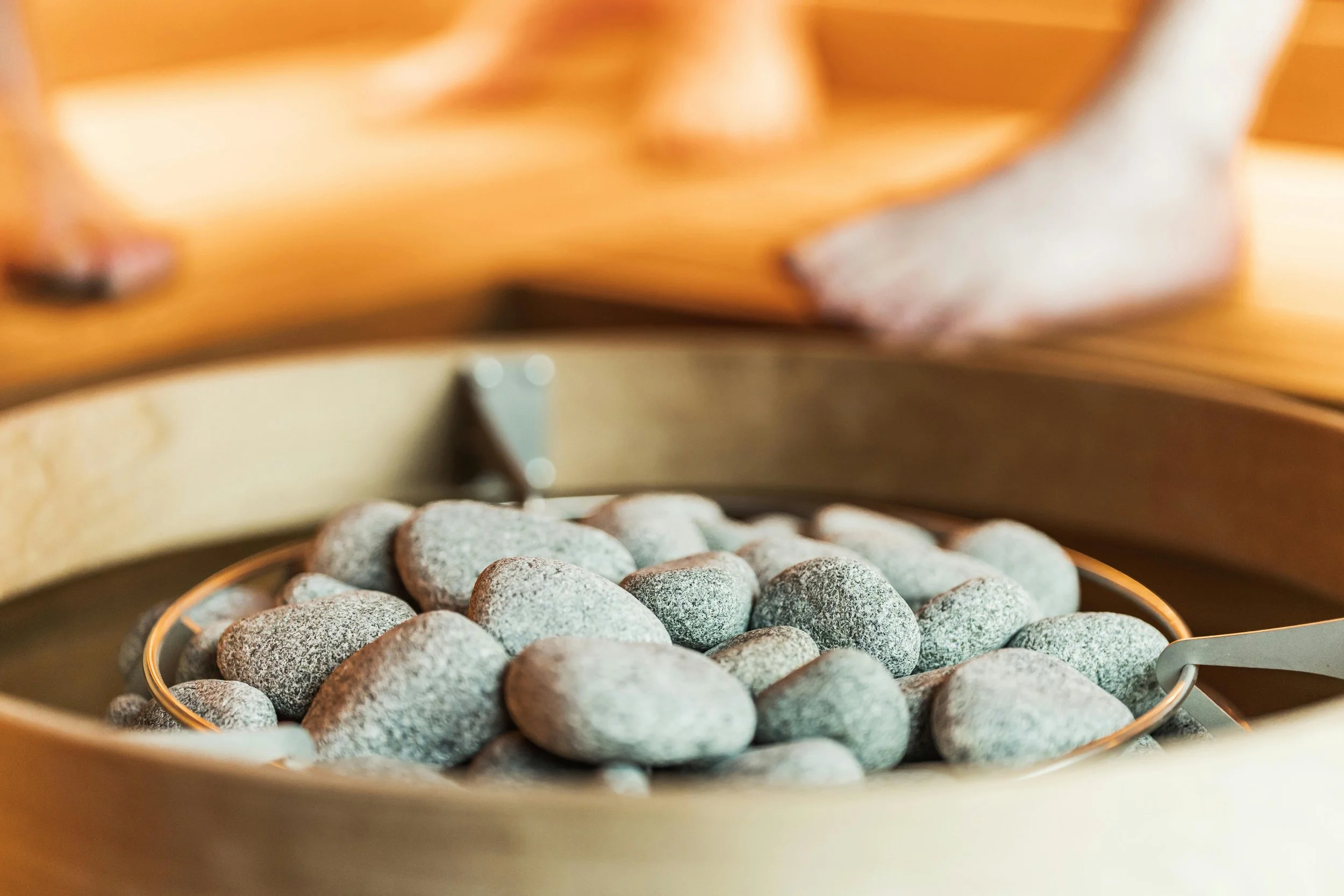 Most guests enjoy 10–20 minutes at a time, followed by a cool-down in our cold plunge or salt pool.